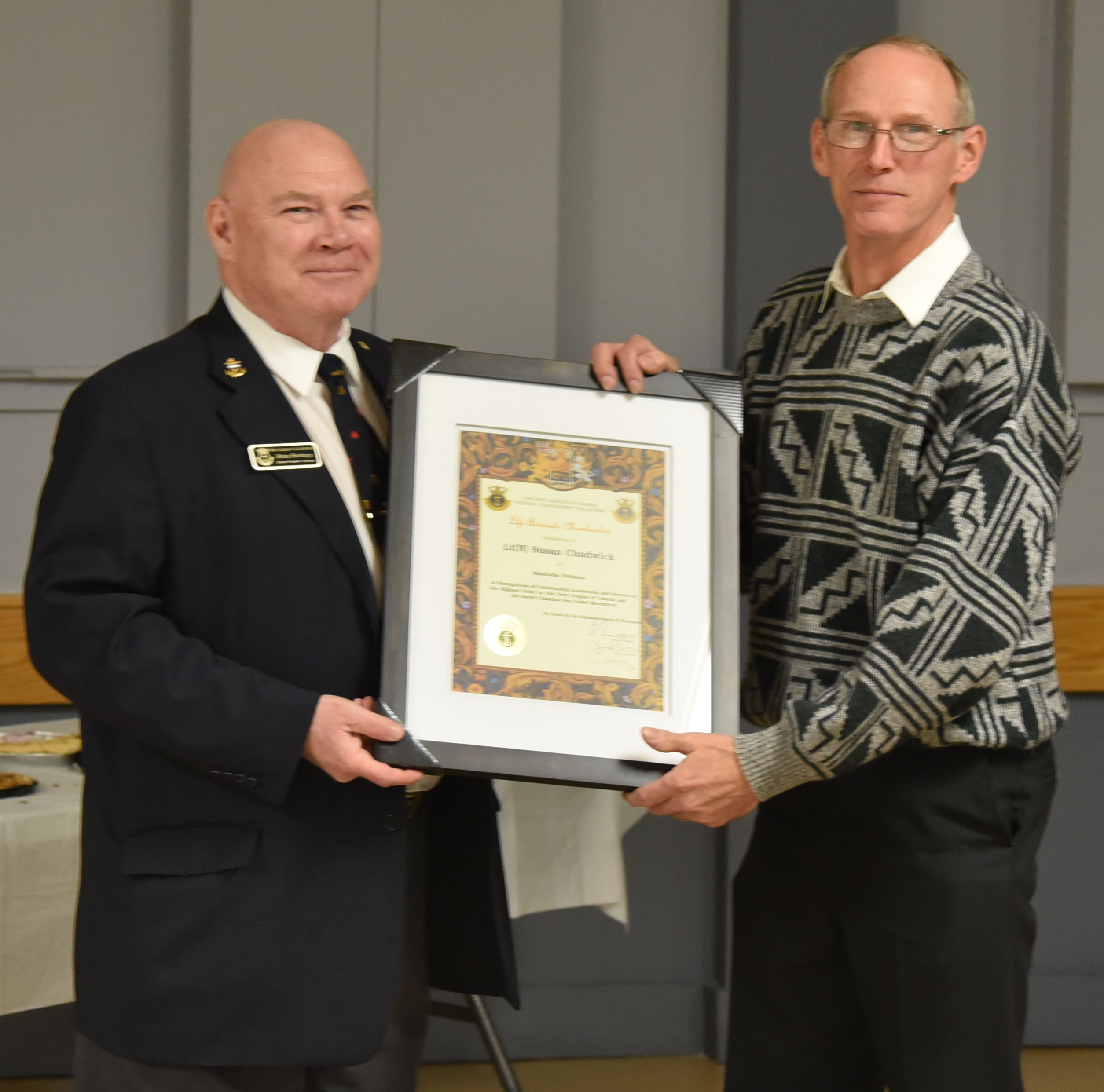 The Manitoba Division of The Navy League of Canada held their first annual Awards Dinner at the West Kildonan Legion on Saturday, November 17, 2018. At the dinner awards were handed out to Division members who had reached milestones in their years of service to The Navy League of Canada, including five new Life Memberships. In addition to those amazing volunteers, awards were given to the four members of the Sea Cadet Centennial Planning Committee who went above and beyond, contributing their time and skills, to help make the Sea Cadet Centennial Celebration in June an outstanding success.